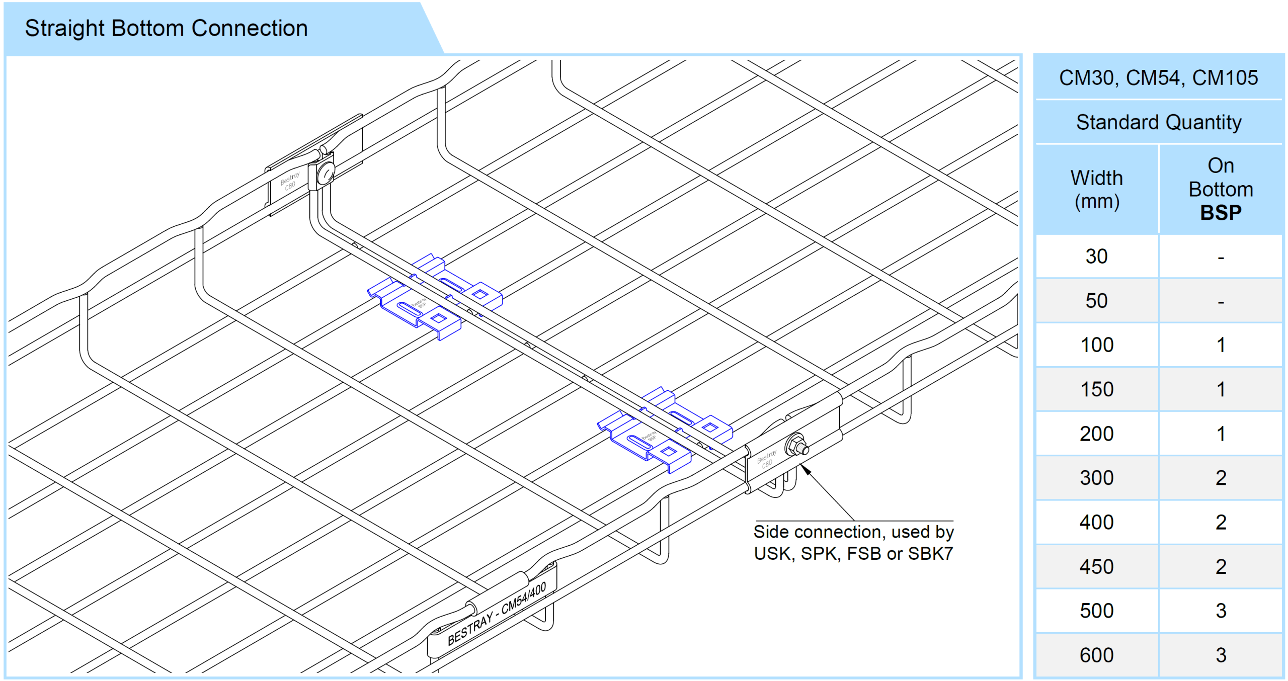 • Used to connect two mesh trough bottoms in a straight line.