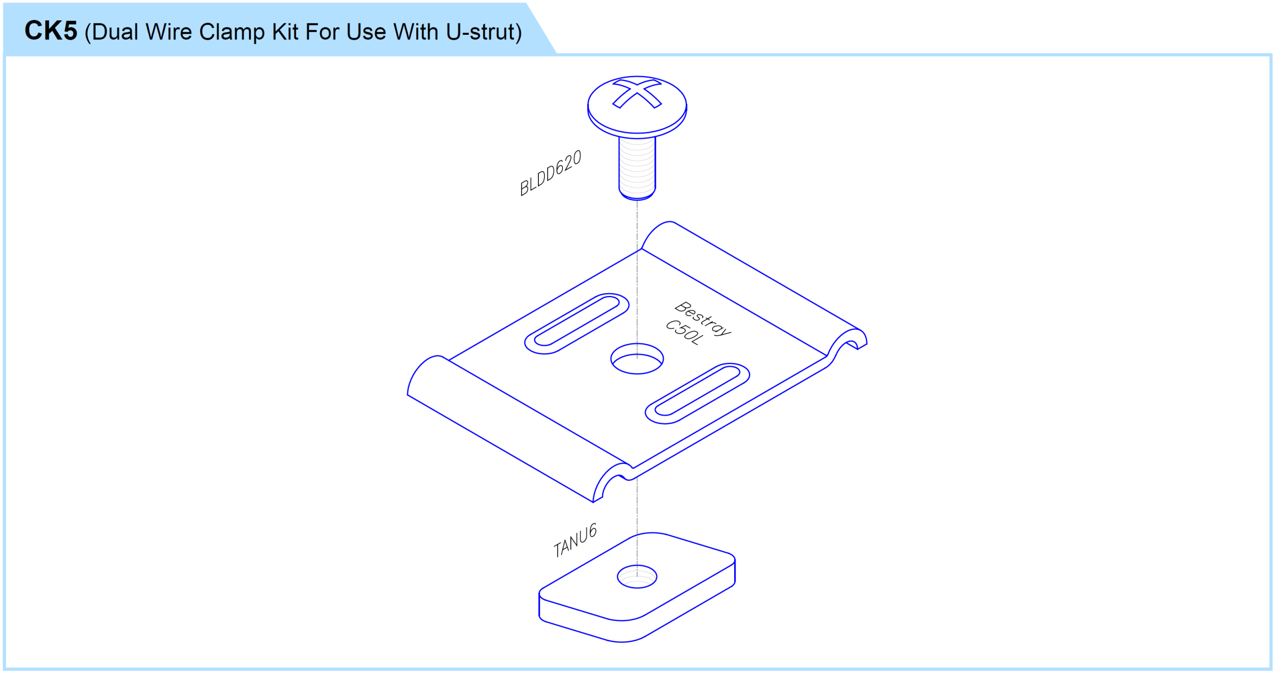 • The trough clamp is used with a U-shaped bar (W >= 100mm).