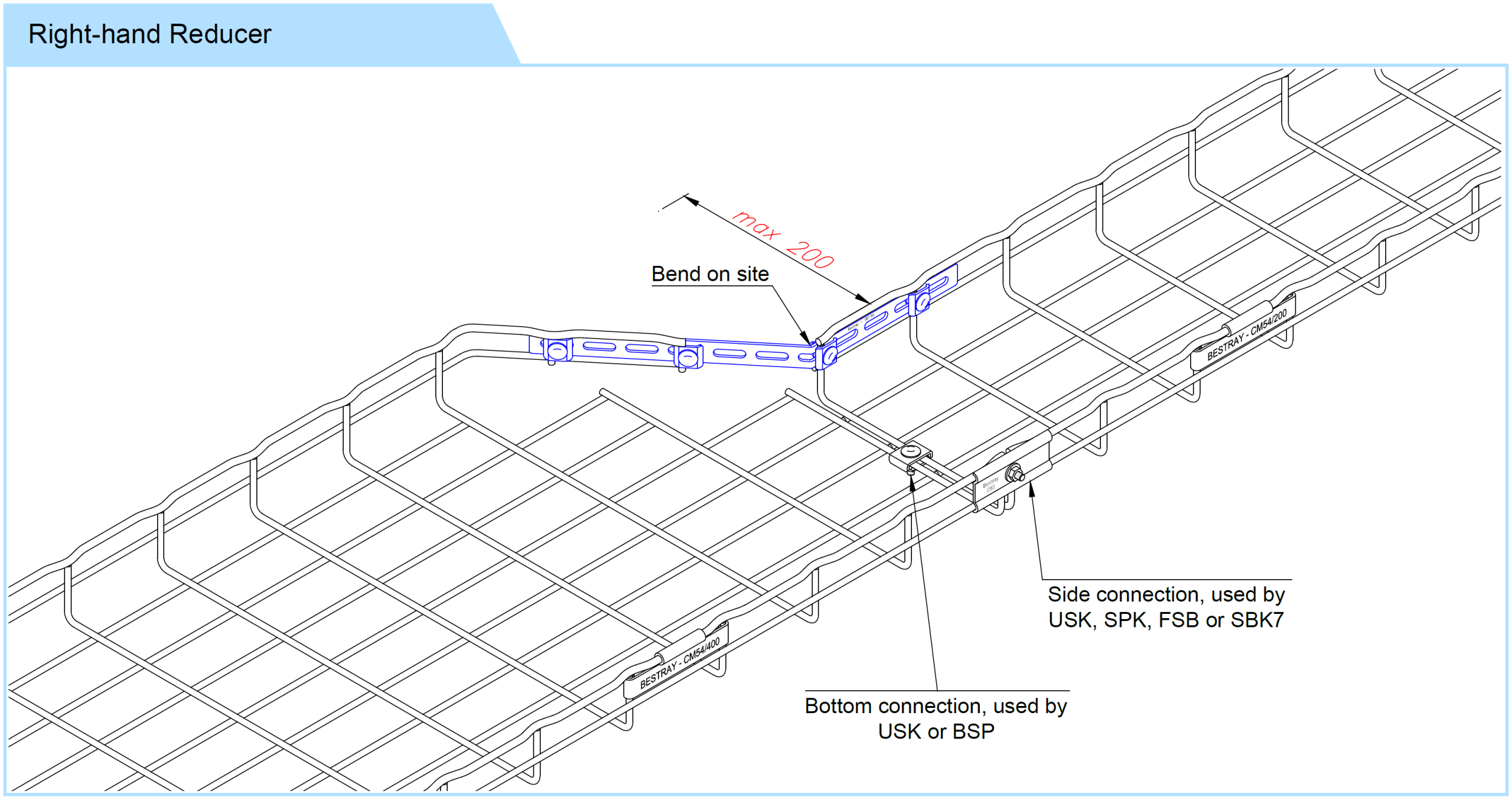 • Used as a reducing coupling, a 45-degree horizontal elbow coupling.