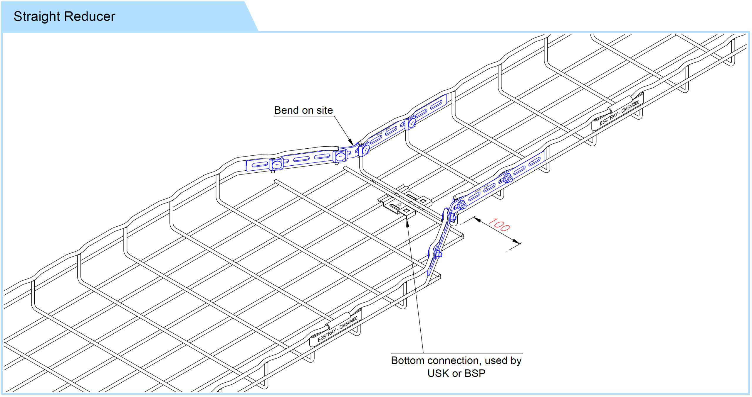 • Used as a reducing coupling, a 45-degree horizontal elbow coupling.