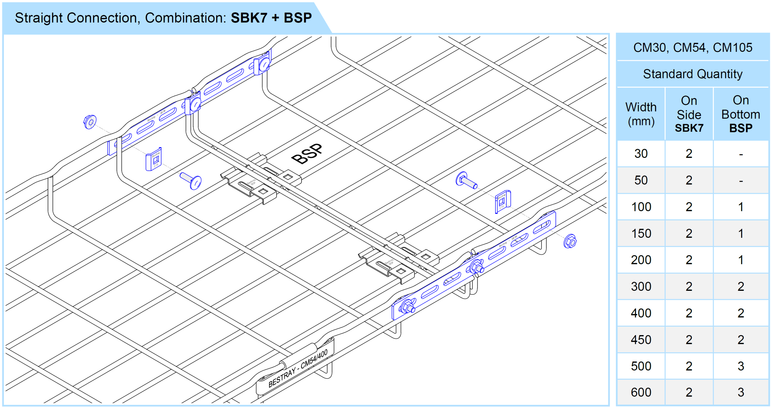 • Used to connect two wire mesh troughs in a straight line, suitable for heavy loads.