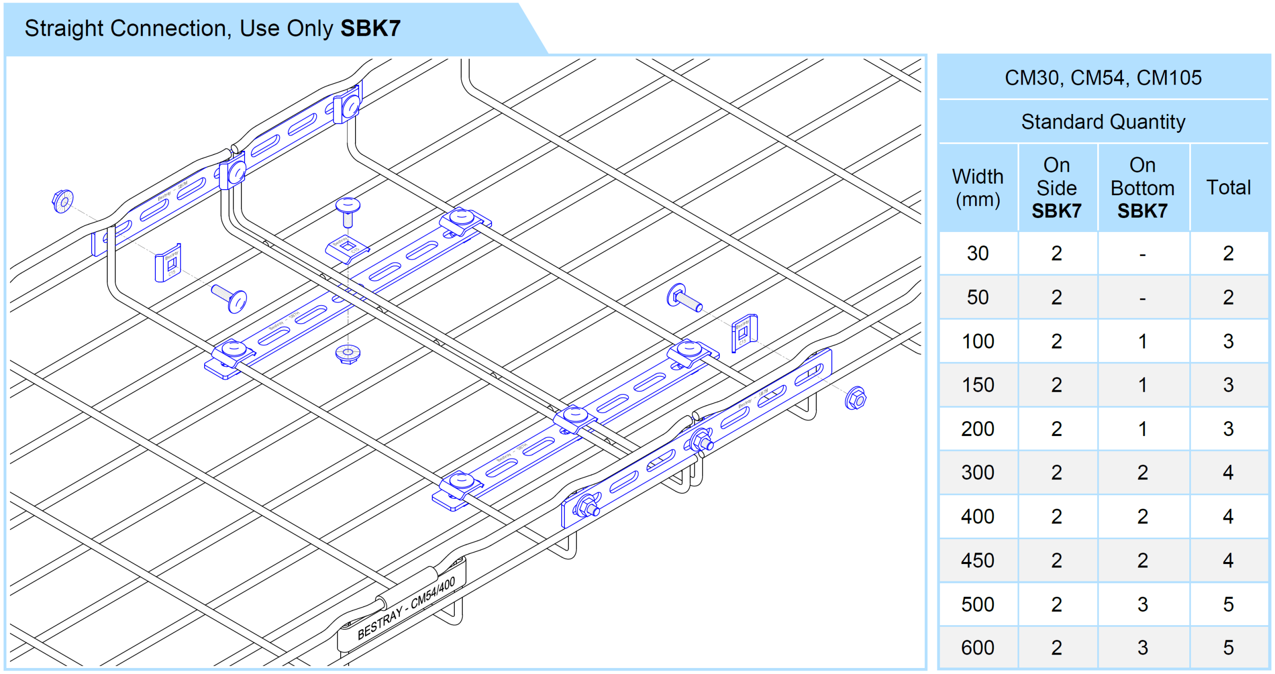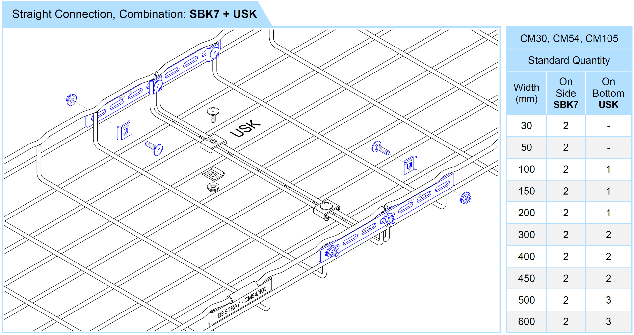 • Used to connect two wire mesh troughs in a straight line, suitable for heavy loads.