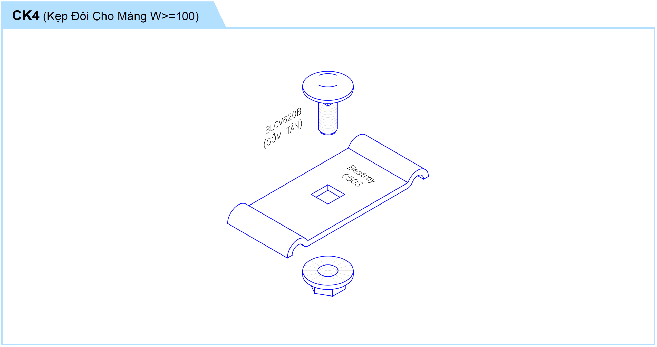 • Kẹp dùng cho máng có độ rộng W >= 100mm