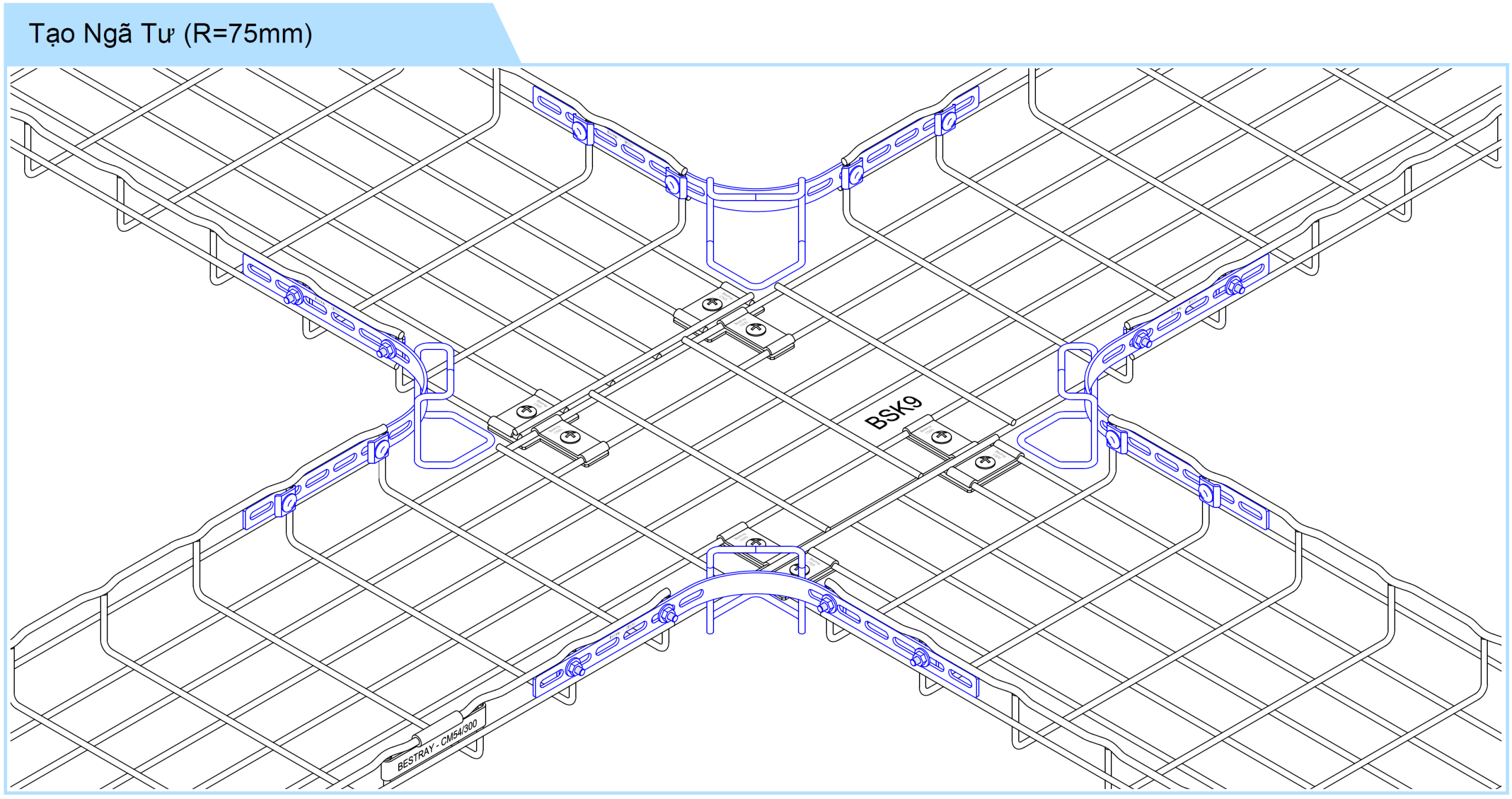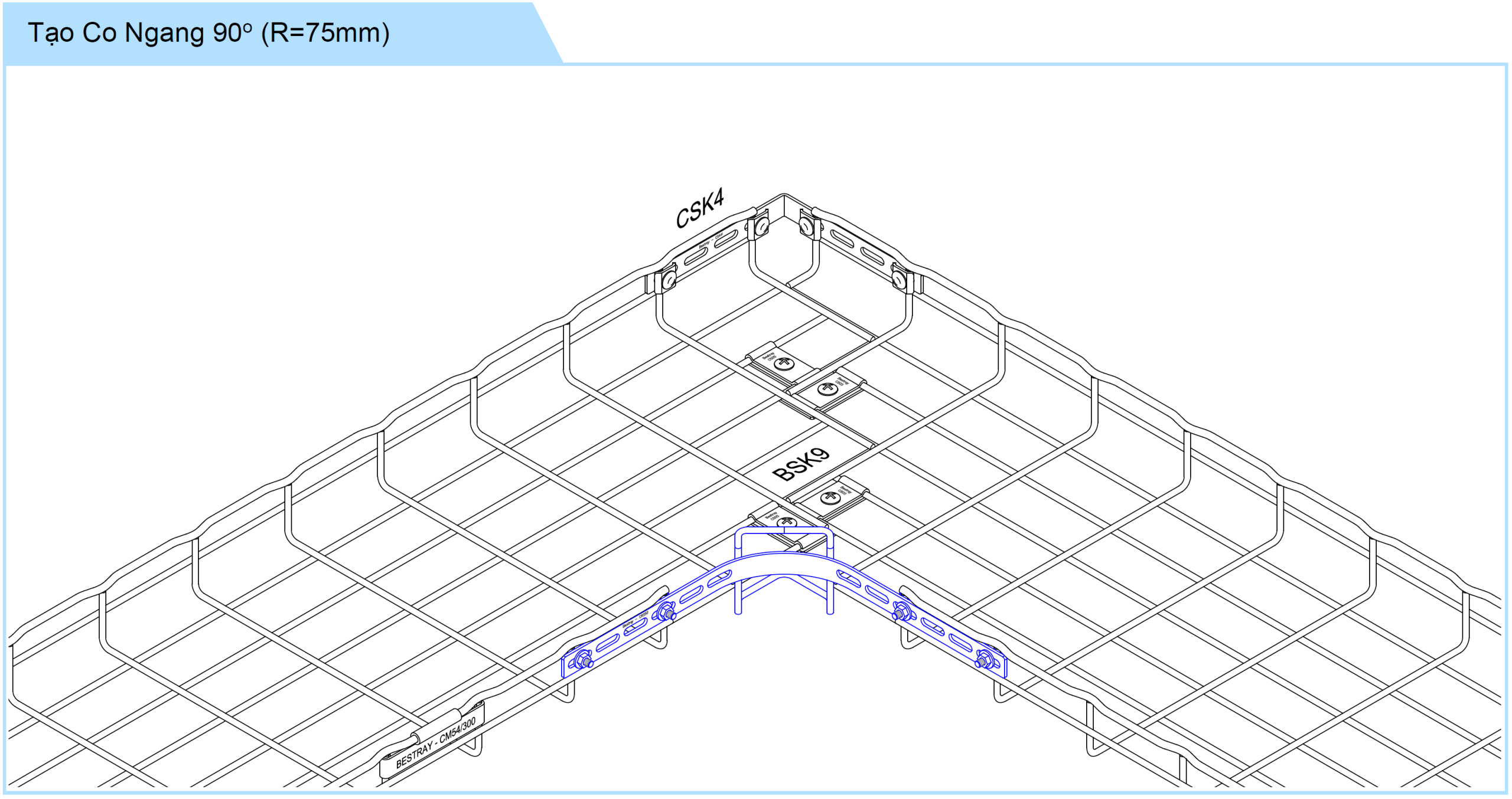 • Nối hông tạo ngã rẽ 90 độ, bán kính cong R=75mm