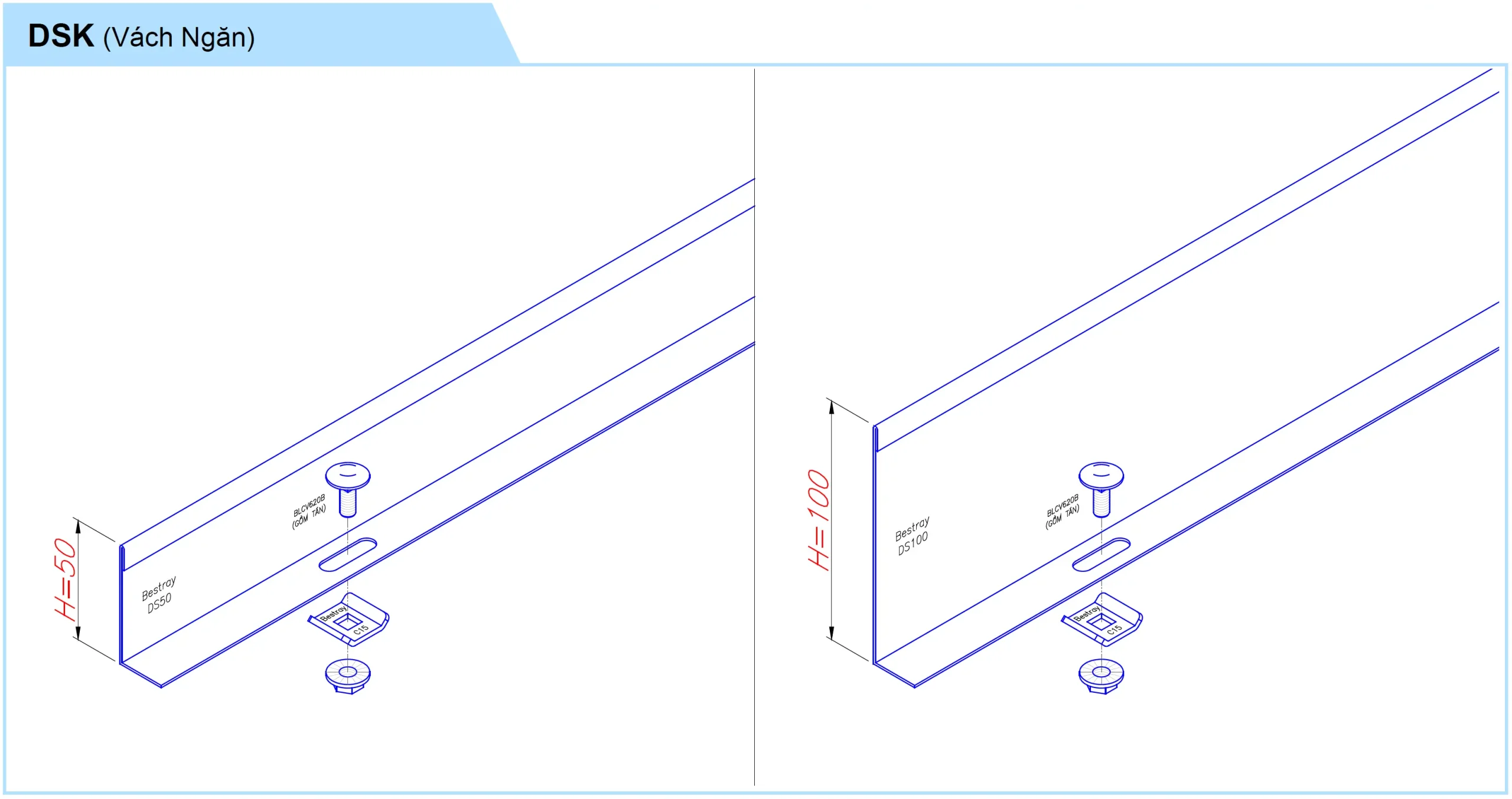 | Cho máng cao | H (mm) | T (mm)