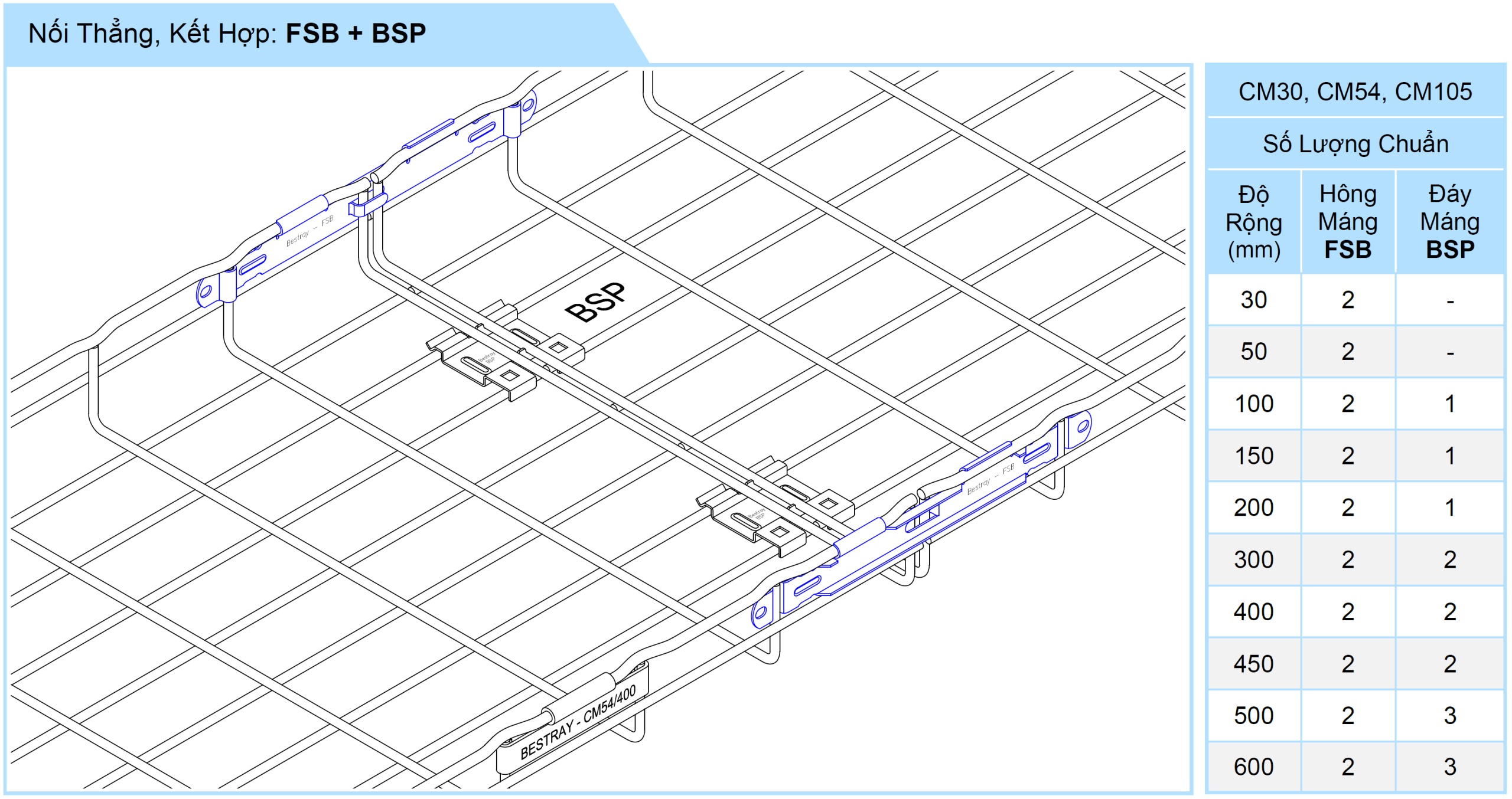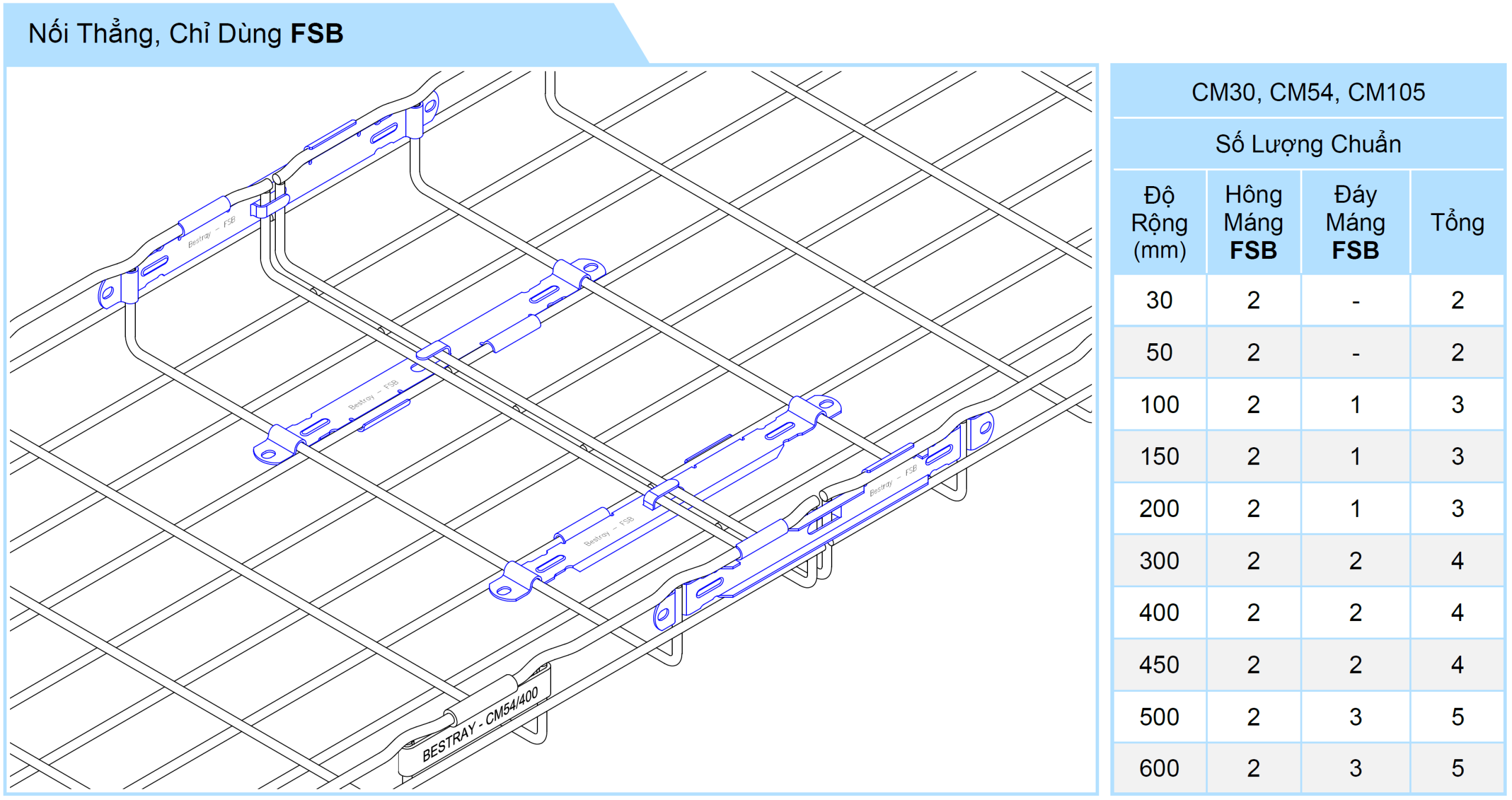 • Dùng để nối thẳng 2 máng lưới, lắp nhanh với dụng cụ QTO